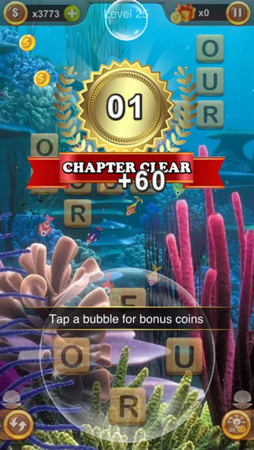 - Find as many words as possible to unlock levels and earn extra bonus coins.