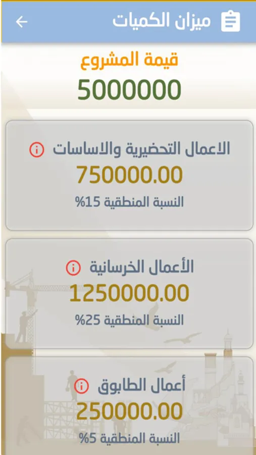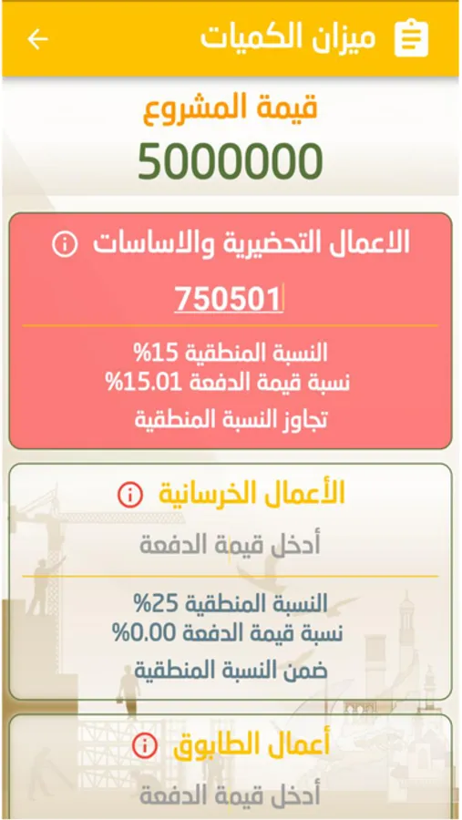 كما يسهل اجراءات تنظيم الدفعات الدورية ويحد من المنازعات التي تطرأ بسبب عدم توافق الدفعات المالية للأعمال المنفذة مع نسب بنود هذه الأعمال. بحيث يستطيع المالك بالتعاون مع الاستشاري بإدخال اسعار بنود الاعمال بميزان الكميات (قبل توقيع العقد مع المقاول) ومن خلاله يتم التأكد من التوزيع الصحيح لنسب الاعمال ومقارنتها بالنسب الاساسية الموجودة في التطبيق، كما يظهر ميزان الكميات اي تجاوز للنسب وبالتالي يتم تلافي تحميل معظم العقد في بداية المشروع ويجنب المالك والمشروع الوقوع في وضع مالي حرج. تهديكم بلدية مدينة الشارقة ميزان الكميات