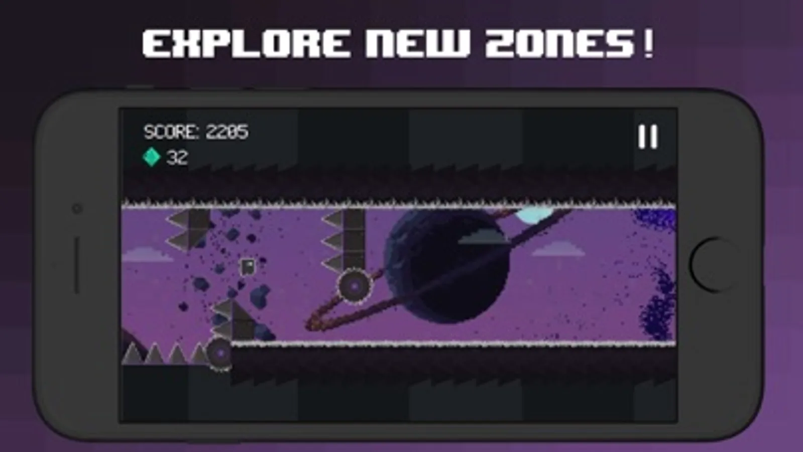 Put your twitch skills to the test in Gravity Dash! Prove your worth by overcoming dangerous hazards such as spike pits, sawblades, and guillotines ... while dashing through a veritable gauntlet of randomly generated levels. Are you ready to defy the laws of gravity by flipping right-side up (or upside down!) to collect gems and unlock new characters?