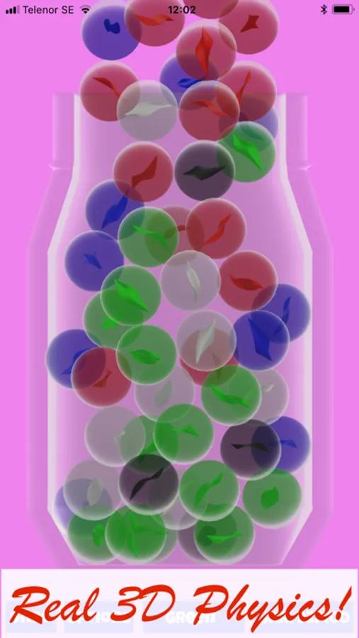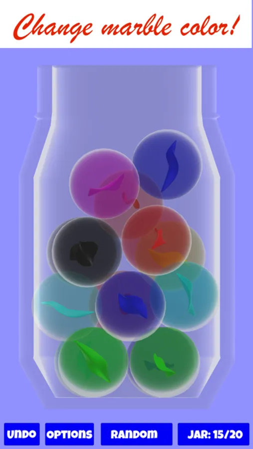 Realistic 3D physics! Marbles respond to gravity. Play with the marbles and rattle them around in the jar!