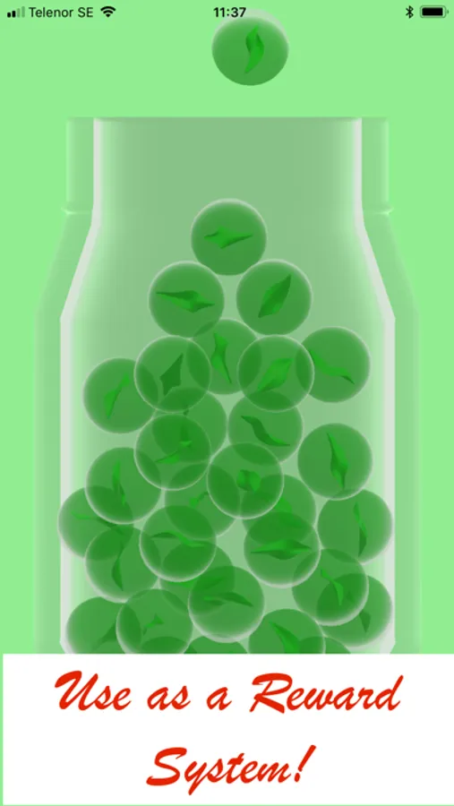Marble jar reward system. Excellent for parents, teachers or families. Customizable jar sizes from five to one hundred marbles! Number and color of marbles is stored on the phone.