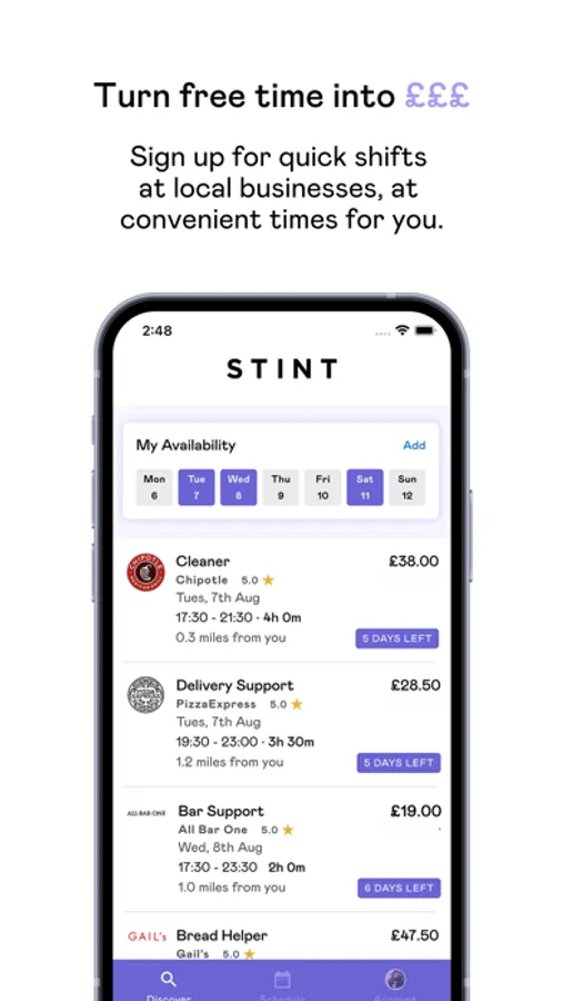 Stint is the future of work. No CV. No interview. Total flexibility. You decide when and where you want to earn money.