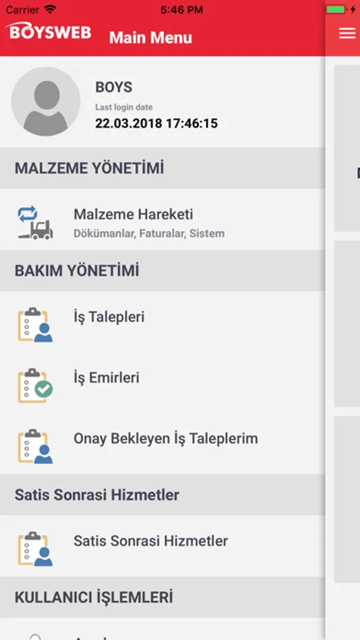 Bu uygulama sayesinde BOYSWEB programının sahip olduğu ana fonksiyonlardan olan iş talep ve iş emri fonksiyonlarını iOS tabanlı cihazlarda da rahatlıkla kullanabileceksiniz.