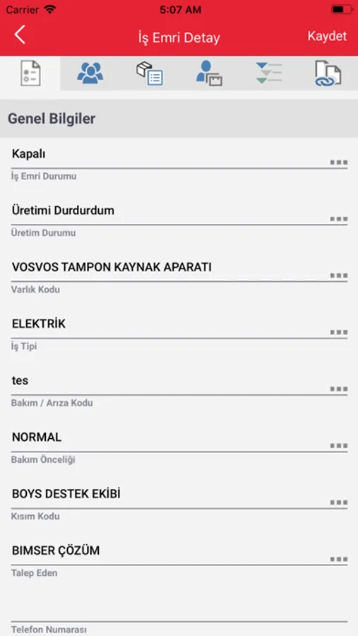 -İş emri bakım bilgilerinin yönetme
