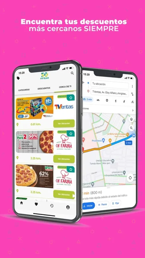 FIFTEAM es la primera app de descuentos inteligentes del país. Descarga FIFTEAM ahora mismo y obtén cientos de descuentos de hasta el 50% en restaurantes, cafeterías, centros de salud y belleza, tiendas de ropa, agencias de viaje, tiendas y centros deportivos, y muchos productos y servicios más.