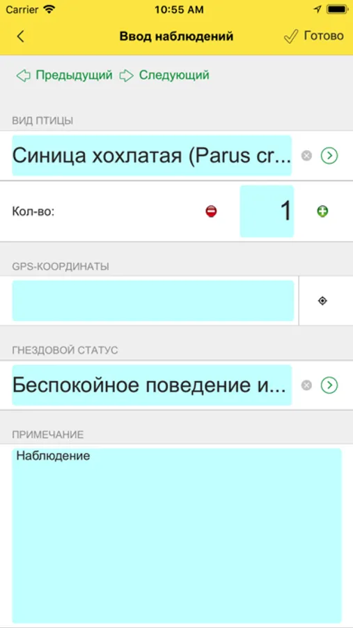 - Выгружать свои карточки наблюдений в базу данных "Онлайн дневники наблюдений птиц".