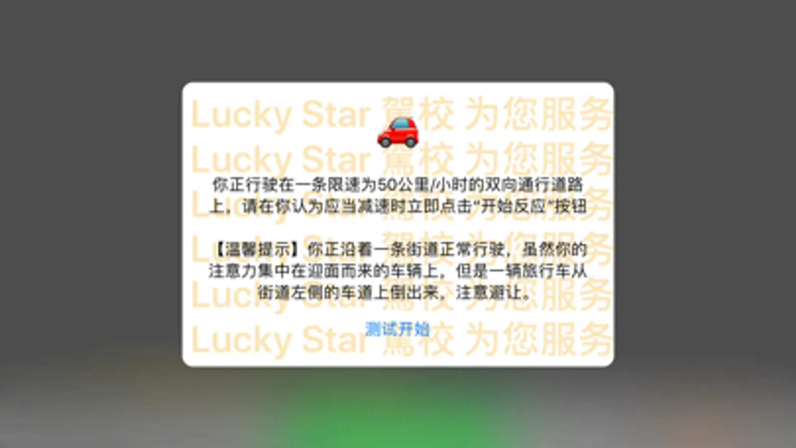 Lucky star driving school 为你提供最新的perception hazard test测试中文版。