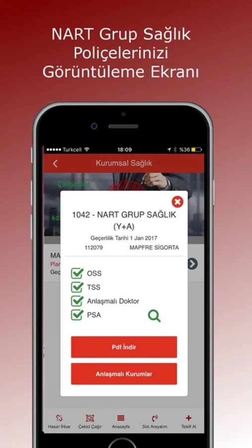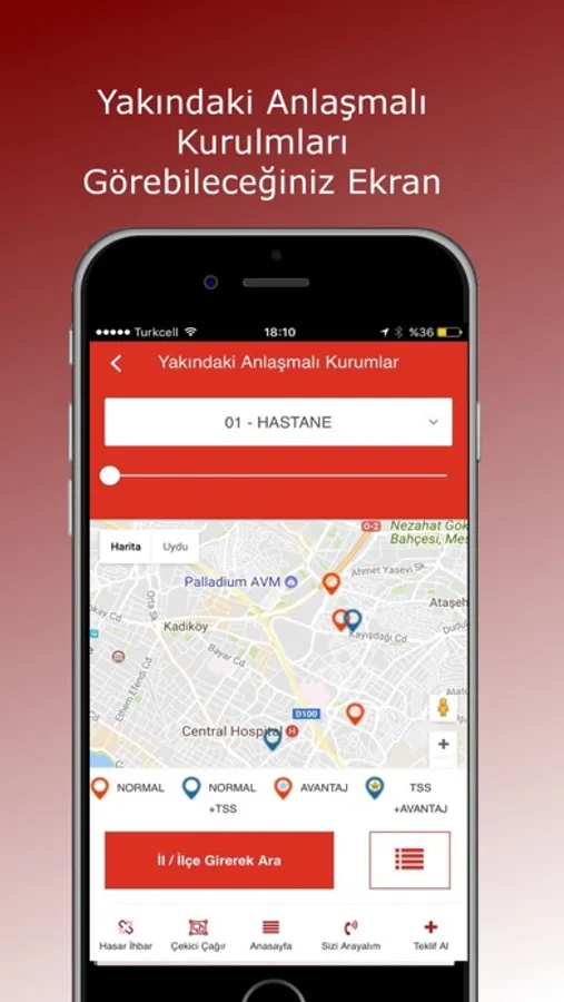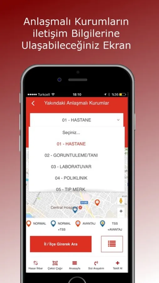- Sağlık poliçelerinize yönelik anlaşmalı kurumları bulma, yol tarifi alma