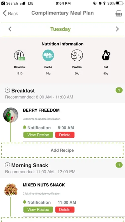 Create a meal plan and set your reminders to never forget a meal again. You can save, edit or delete meal plan - or, you can use the preset meal plans.