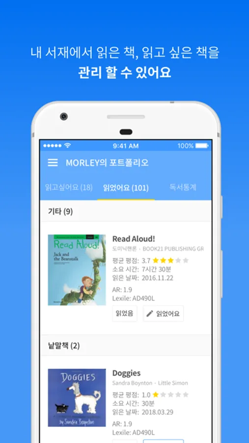 읽고 싶은 책과 이미 읽은 책을 기록할 수 있고, 현재까지의 독서 시간을 누적해서 기록할 수 있는 완벽한 영어 독서 기록장!
