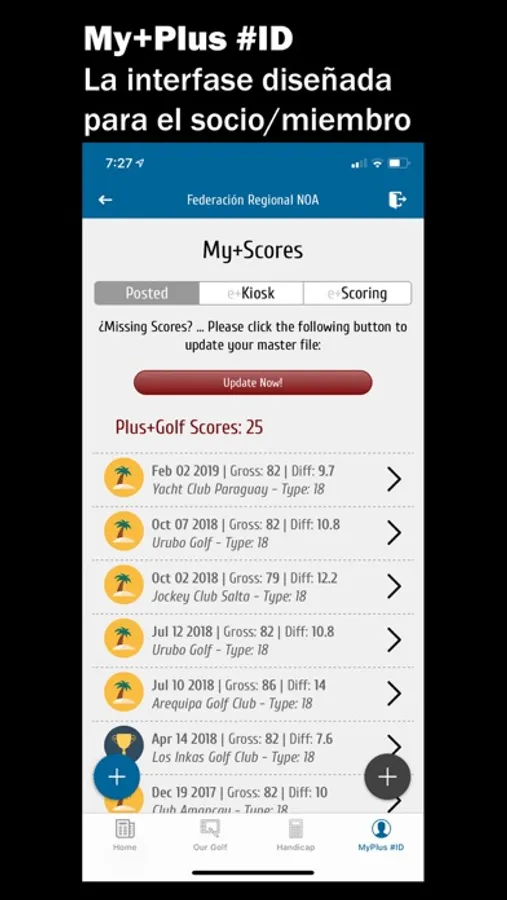 - Conexion con el hándicap de la Asociacion Nacional de Golf