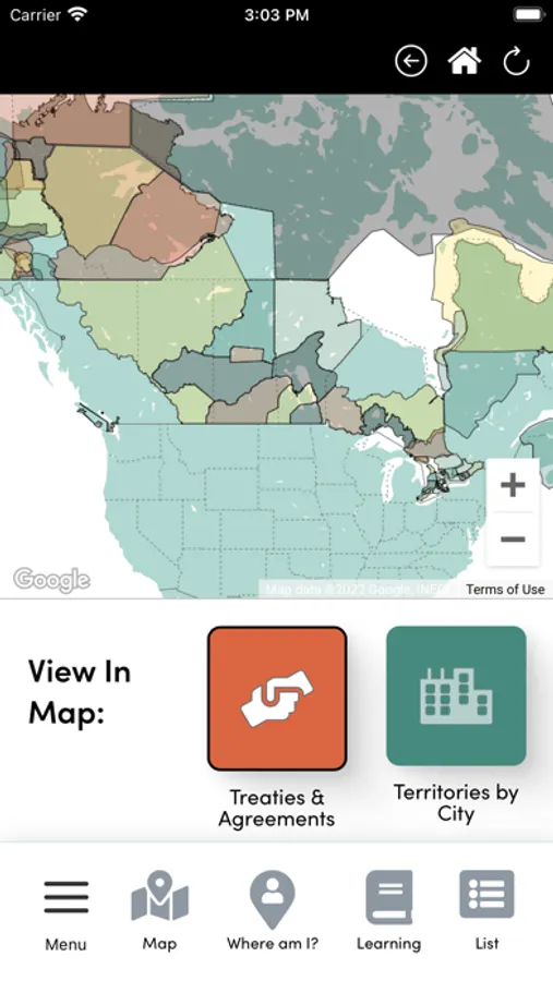 The Whose Land app is a collaboration between Canadian Roots Exchange, TakingITGlobal, and Bold Realities. The app consists of six different maps of Indigenous territories, Treaties, and First Nations, Inuit, and Metis communities.