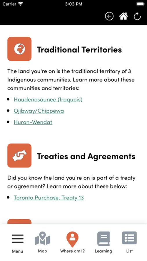 Each community's location will eventually host a land acknowledgement video, and other information that the community would like to include on their page. The app will be used as an educational tool to create dialogue around reconciliation. It will be a starting point for conversation between Indigenous and non-Indigenous citizens across this country about land, territorial recognition and land acknowledgement.