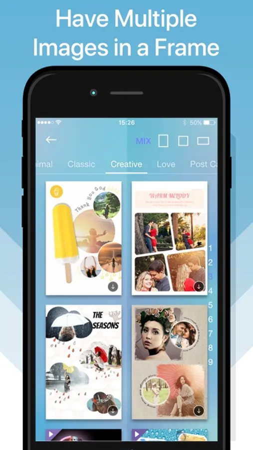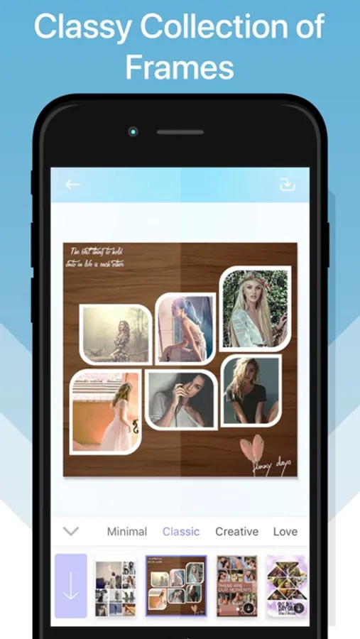 Classic and the most fashionable Photo Grid & Photo Collage Maker & Picture editor! There are lots of layouts for collages and frames for pictures. Over 1100+ Square, Portrait, Landscape, and Strips frames and styles layouts to suit all your artistic collage needs!