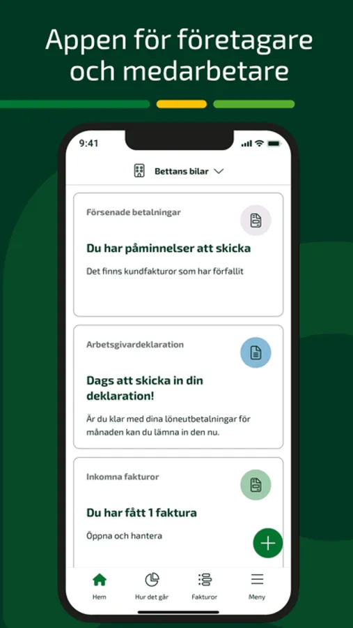 Fortnox app gör jobbet enklare både för dig som är företagare och dig som är anställd. Den hjälper dig att hantera det dagliga i företaget som t ex. skanna och registrera kvitton, ta betalt av kunder, registrera tid, betala ut egen lön eller få lönebesked. To-Do-listan hjälper till att hålla koll på det som är viktigt.