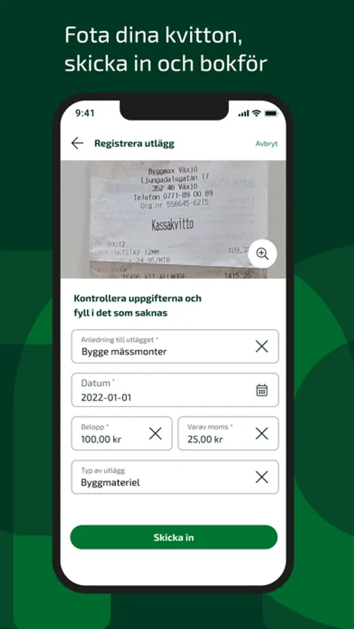 – Fota kvitton för utlägg och skicka in som underlag