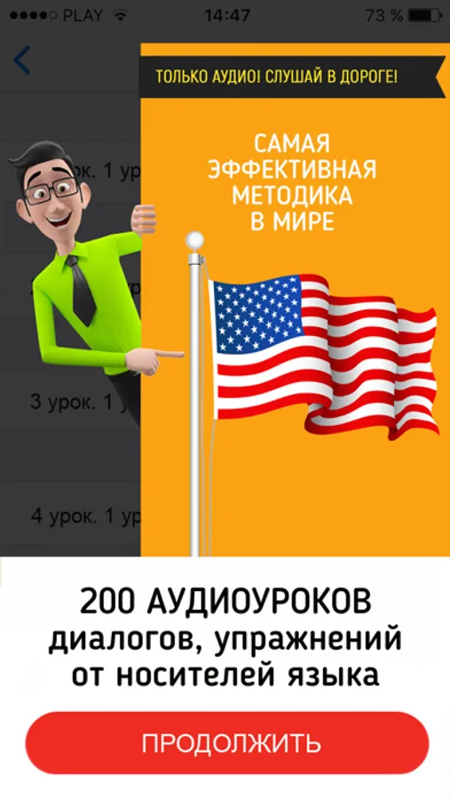 Способ изучения языка в нашем приложении невероятно прост: нужно лишь слушать живой язык носителей (аудирование), самому на него реагировать (отвечать на вопросы) и делать это через определенные промежутки времени.