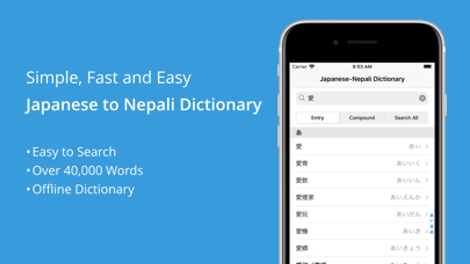 - Can search in Japanese, English, Nepalese!