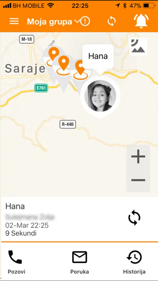 - Šaljete alarmne/panik obavijesti na predefinirane brojeve u slučaju neželjenih situacija,