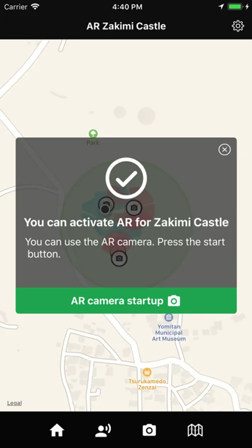 While visiting the Zakimi Castle Site, the AR camera can be activated as you enter the designated area colored in green on the map.