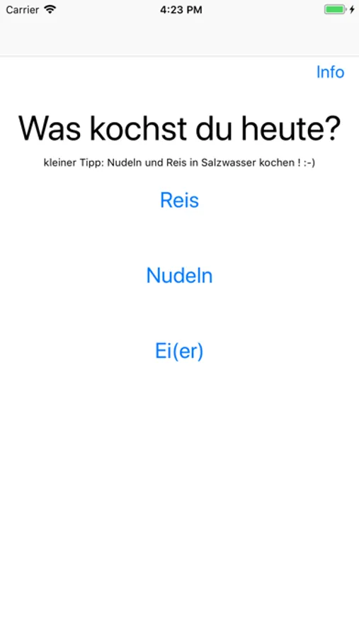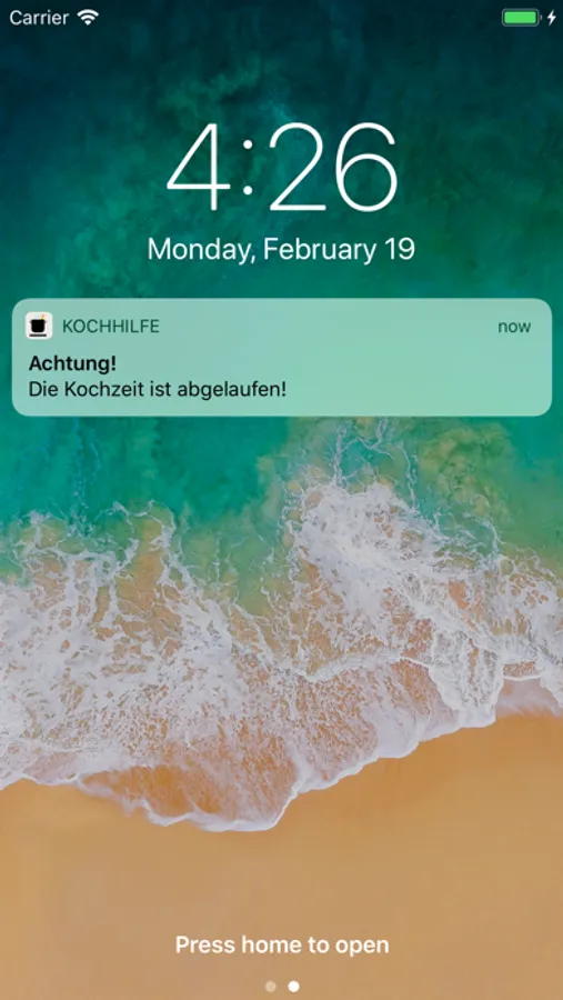 Du wählst im Menü einfach die von dir gewünschte Sorte Reis oder Nudeln und kannst dich entspannt zurück lehnen. Solltest du die App im Hintergrund laufen lassen, erhältst du eine Benachrichtigung in Form von einem Banner sobald dein Essen fertig ist und beim öffnen ein Alert angezeigt, sollte die App im Vordergrund laufen bekommst du sofort ein Alert ohne Benachrichtigung angezeigt. Wenn dein iOS Gerät nicht auf stumm geschalten ist, ertönt auch ein Alarmton. Du kannst auch einfach nur eine Eieruhr laufen lassen.