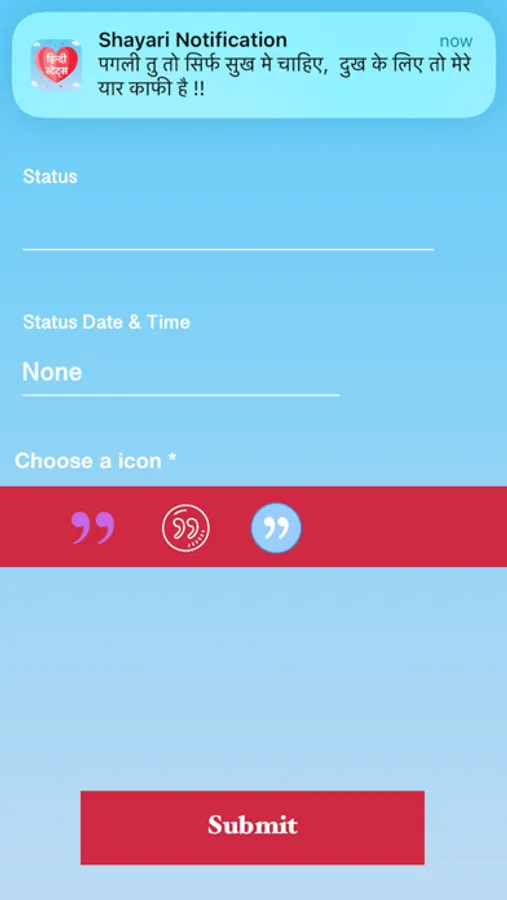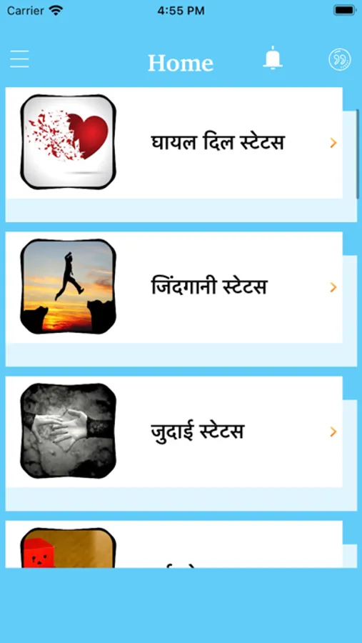 Download Latest Hindi Status, Hindi Quotes and Hindi Shayari Application Now and Enjoy Awesome Hindi Status.