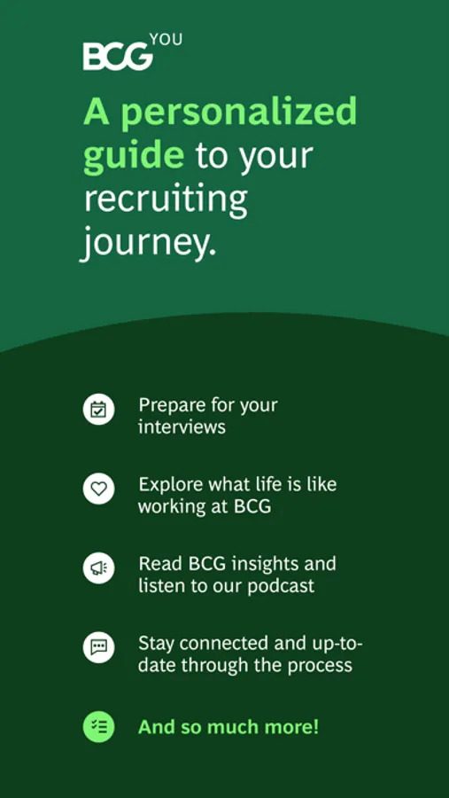Welcome to BCGYou - a personalized guide to your Boston Consulting Group recruiting journey.