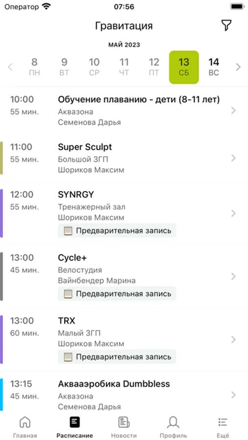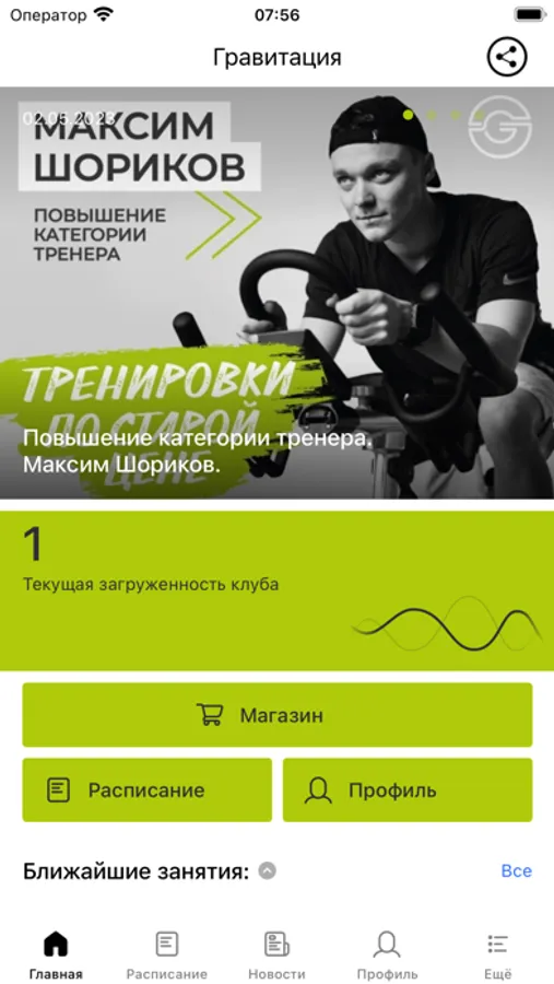 Мобильное приложение доступно для членов клуба "Гравитация". С его помощью можно: следить за новостями и объявлениями клуба, следить за расписанием, пополнять баланс, записываться на тренировки.