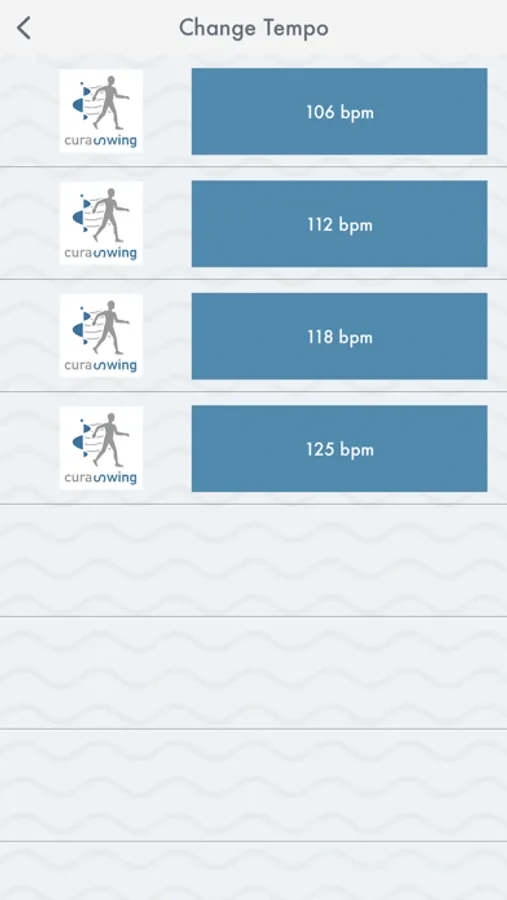 Open the app and select a music title based on your desired walking pace. You should choose the pace that best supports you when you swing your arms. If unsure, start with the slowest track, 106 bpm, and then try to build up.