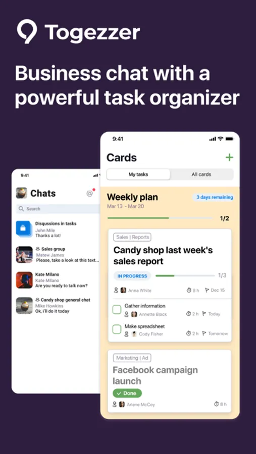 You communicate and set tasks in a separate space protected from strangers. When an employee quits, you can remove them from all work chats with one click.