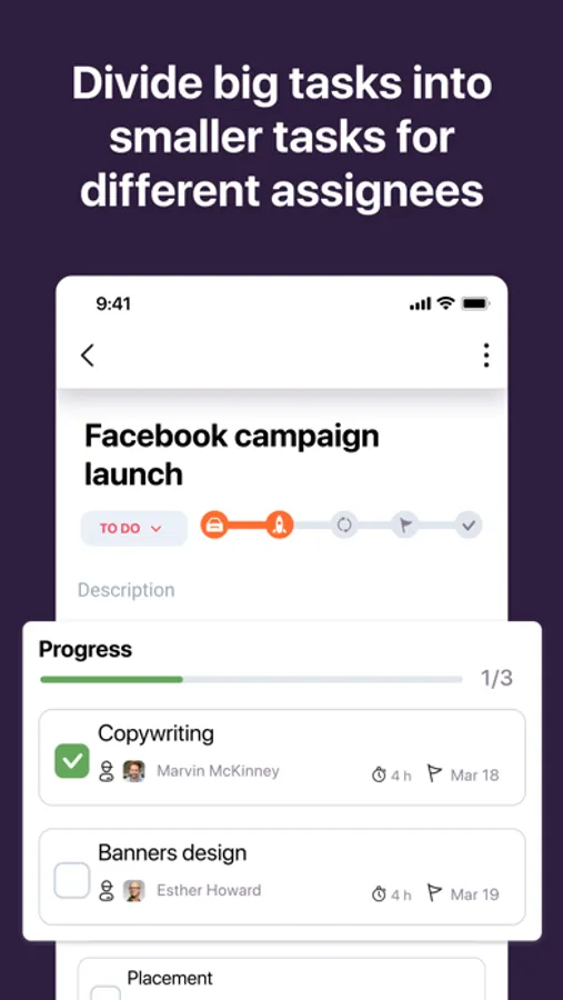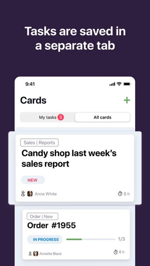 We are well familiar with issues that occur when organizing workflow. Easy communication, clear agenda, ability to divide big tasks into smaller ones, track the progress, and be notified when a task is completed or if something went wrong. And no more forgotten tasks!
