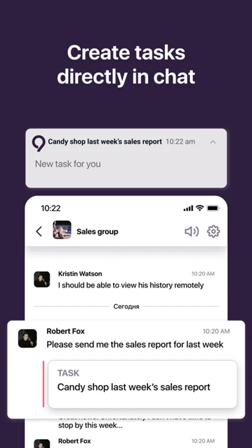 You can quickly create tasks directly in a chat – it will become noticeable and appear in the general list of tasks to be completed.