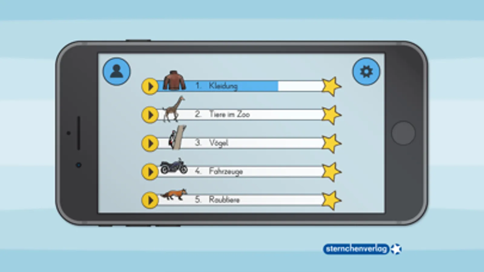 Auch die 2. Lese - App bietet jedem Kind die Möglichkeit in 12 weiteren Level aus verschiedenen Themenbereichen wie z.B. Tiere im Zoo, Fahrzeuge, Kleidung, Pferde - Wörter, Fußball - Wörter, drei- und viersilbige Wörter, uvm. … lesen zu üben und seine Kenntnisse zu verbessern. Dabei lernt das Kind mit Motivation den jeweiligen Artikel kennen. Am Ende wird das Wort mit Artikel nochmals vorgelesen.