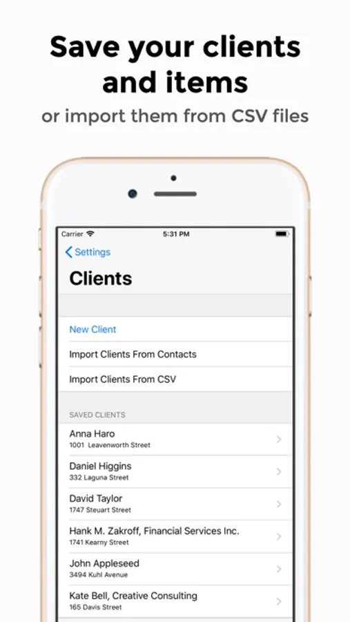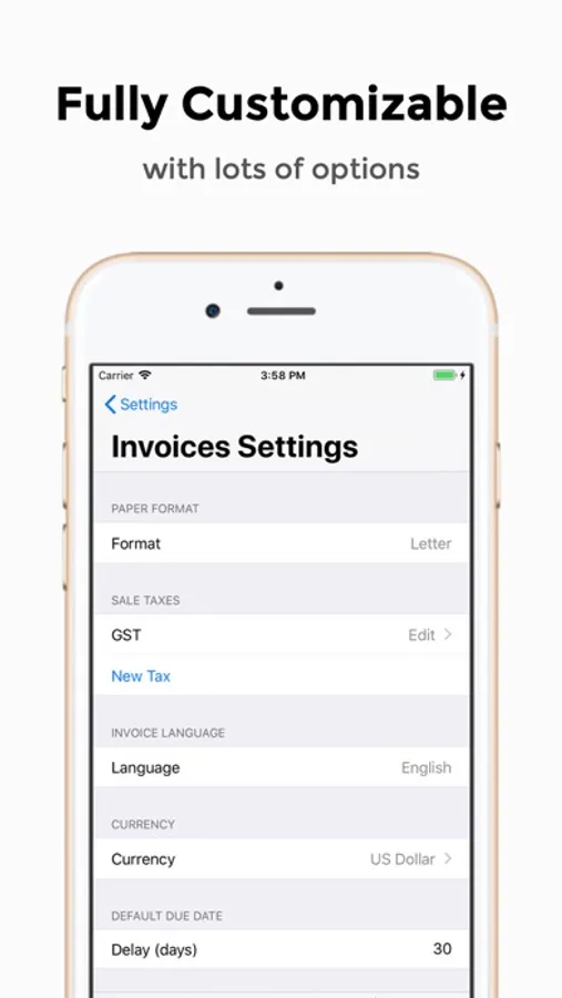 • All texts on documents can be customized. You could use our app in English and translate texts appearing on invoices and estimates in a language we are not yet supporting!
