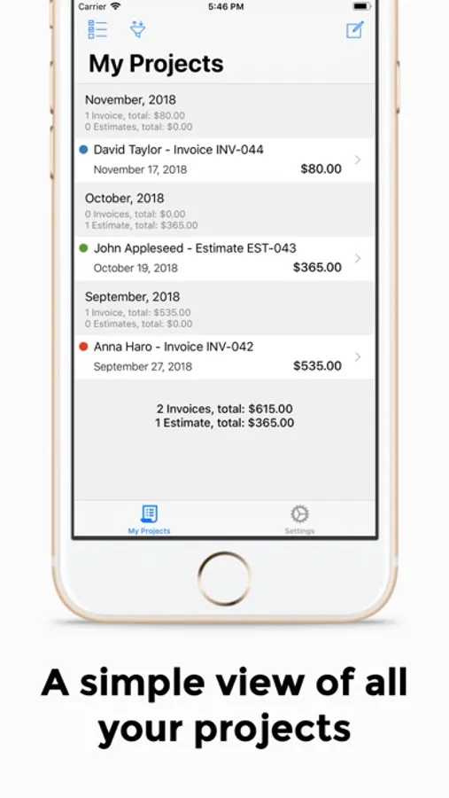 • Track your bills (saved, sent, pending payment, paid, canceled)