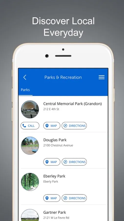 Government and Parks & Recreation sections allow you to have all the important contact and destination information in your city with the click of a button. Learn about your city's history, demographics and elected officials. Find parks, facilities and points-of-interest along with information, phone numbers, maps and directions.