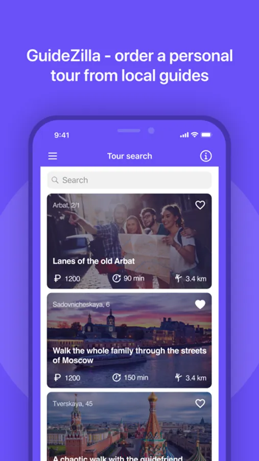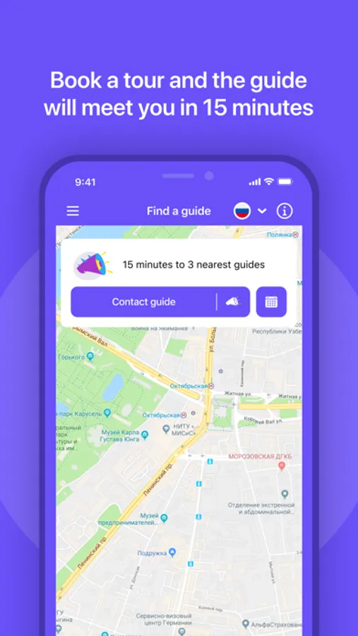 GuideZilla is an app for ordering a fascinating guided tour. Your excursion will start within 15 minutes after your request.