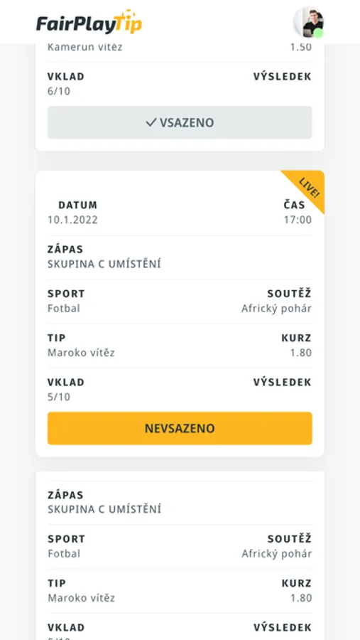 Aplikace FairPlayTip vám umožní sledovat aktuální tipy na kurzové sázky různých tipů sportů.