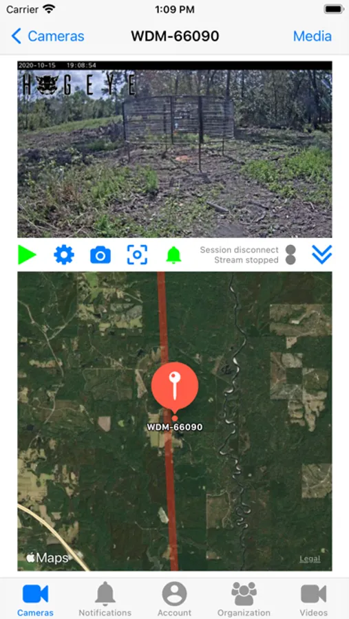 This is a mobile app for remote control and management of HogEye traps with live streaming video, allowing users to remotely deploy the trap when an entire sounder is beneath.