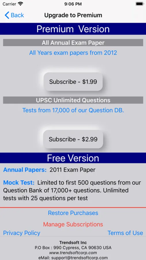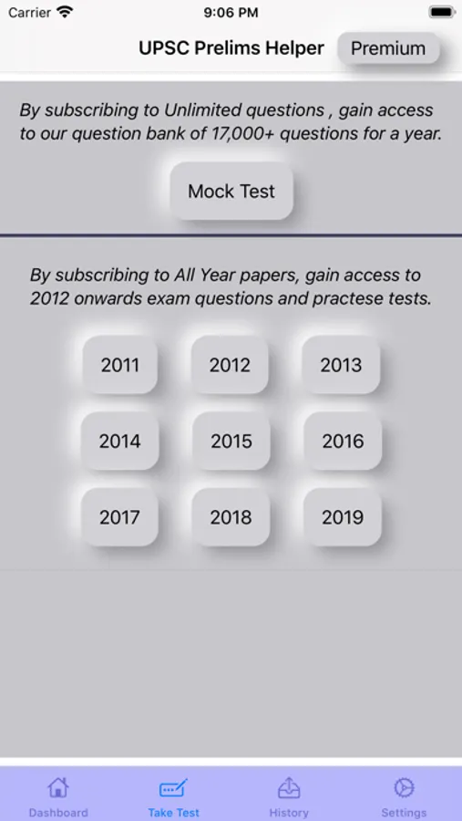Paid version include more than 17,000 questions (and growing) and all available UPSC test Years from 2011 till 2018