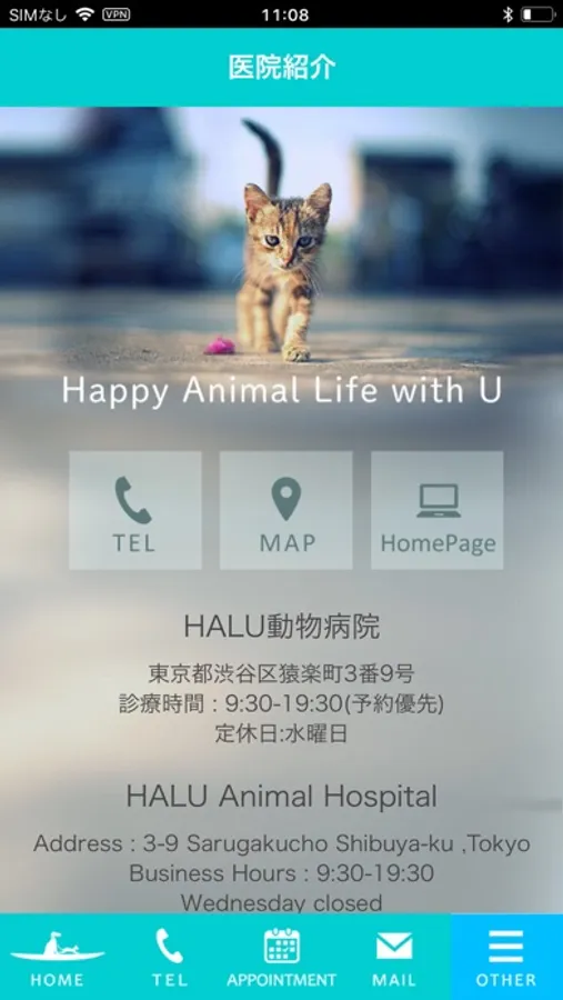代官山にあるHALU動物病院のアプリです。