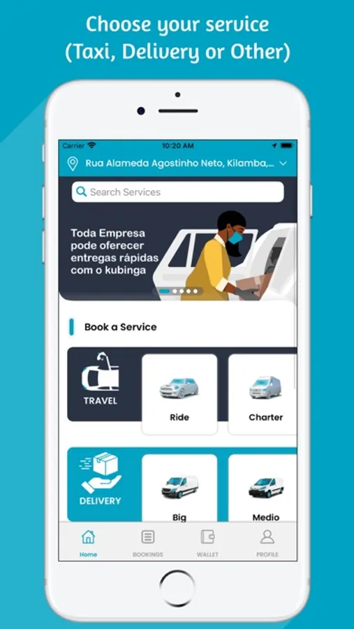 aplicação e um agente Kubinga irá levá-lo ao seu destino ou entregar o que quiser de forma simples e segura.
