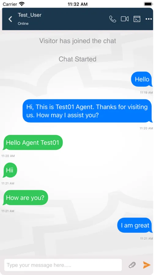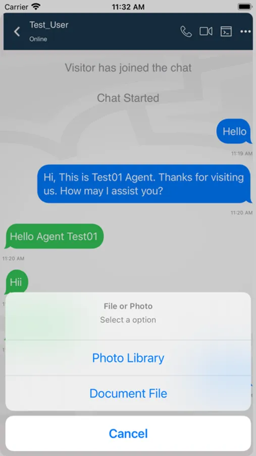 • File Transfer: Visitor and agent can send png, jpg, pdf, txt file among themselves. Maximum file size is 10MB.
