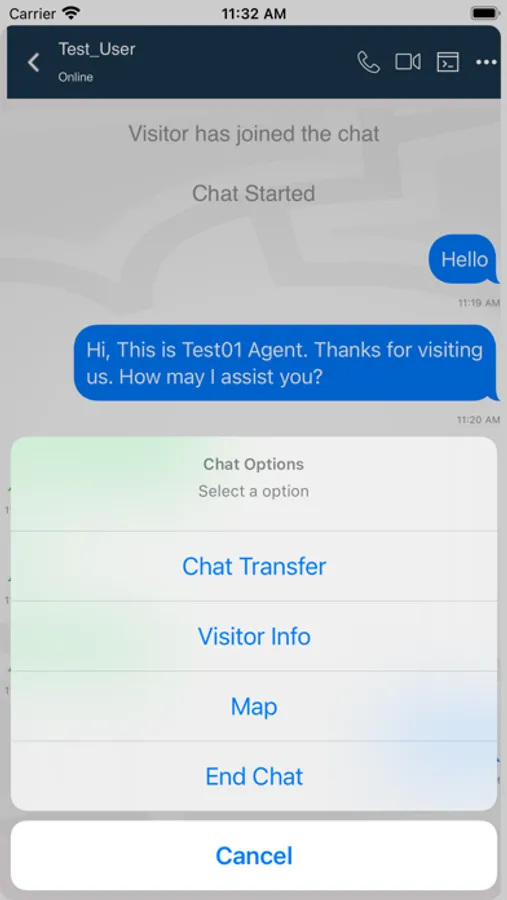 • Chat Transfer: One agent can transfer his chat to another agent.