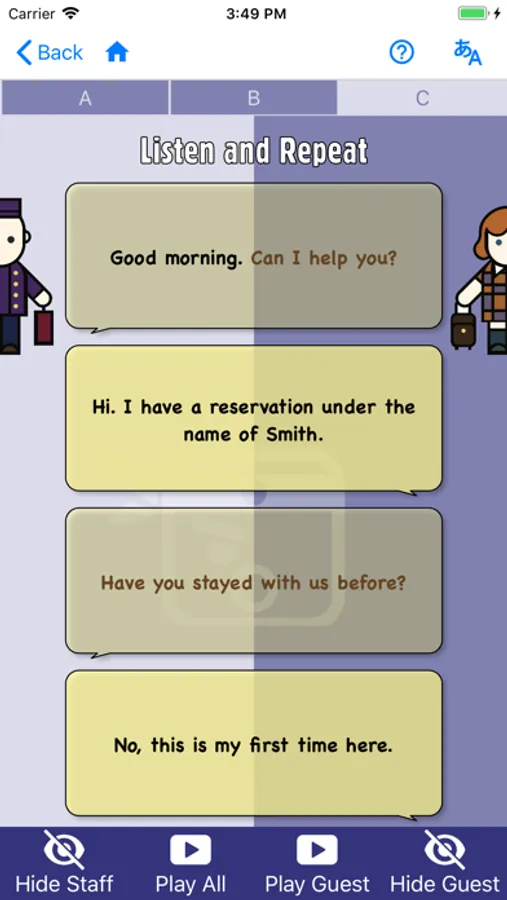 A range of dialogues covering basic situations and common challenges, which you can roleplay with a computerized customer.