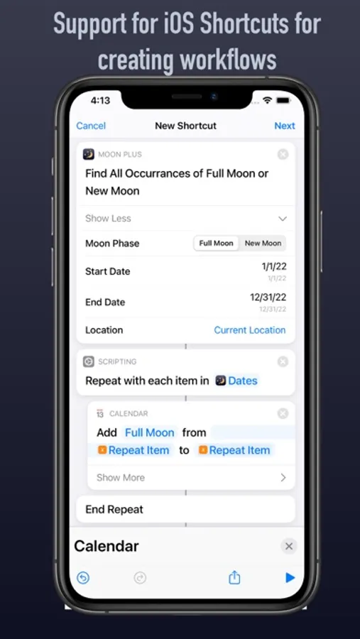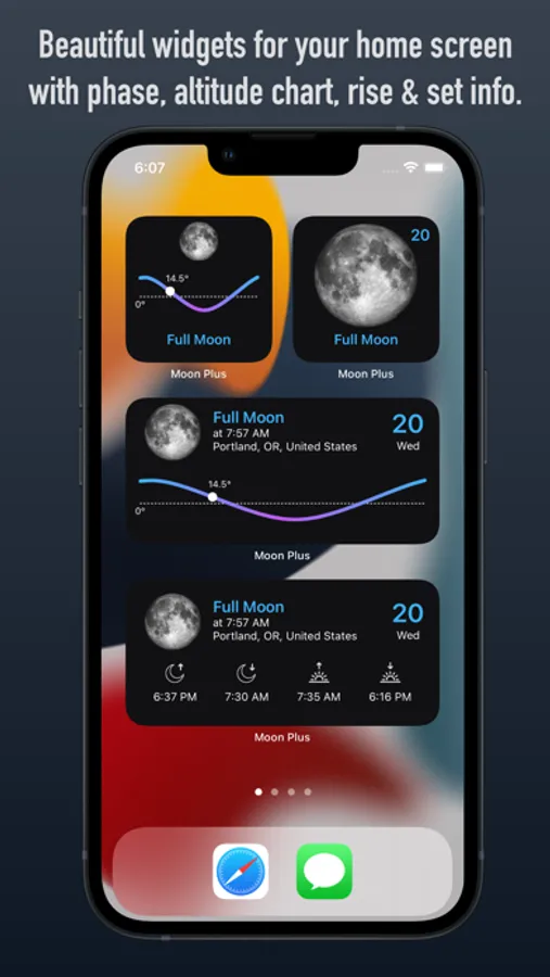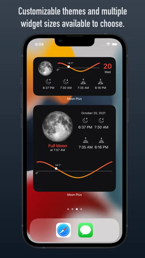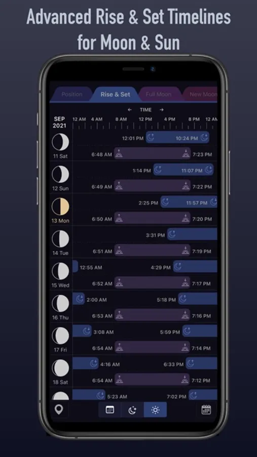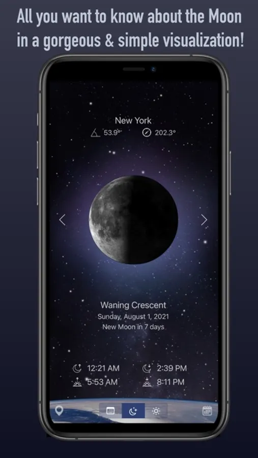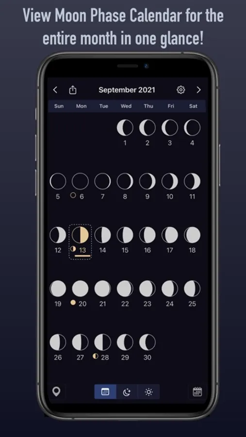 Moon Calendar with month view showing all moon phases, today view providing current moon phase, waxing or waning info, exact rise & set info for moon and sun in an eye-catching beautiful interface. Includes Home Screen widgets and lock screen widgets (iOS 16+). Save multiple locations for travel.