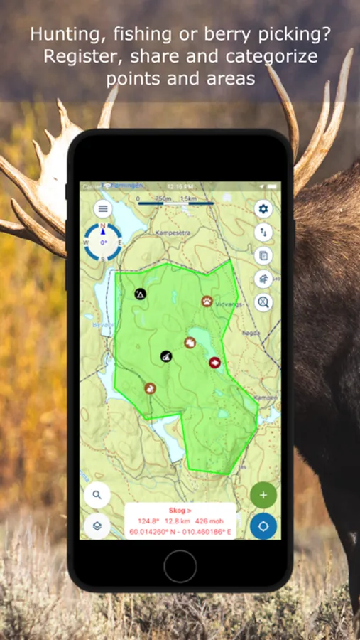 Norgeskart Outdoors has everything you need for your outdoor activities. Be it hunting and fishing, hiking, cycling, skiing or boating. All functions and content can be made available even without mobile coverage.