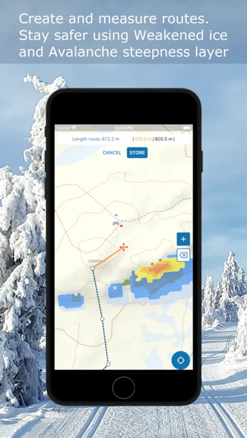 Choose from more than 40 maps and map layers. Beautiful topographical maps from the Norwegian mapping authorities can be downloaded before you go on a trip for offline use. Many apps only let you turn on one layer at a time, here you can combine as many layers as you wish to create a complete overview of your surroundings. E.g. by turning on Pistes, Avalanche steepness and Weak ice layers.