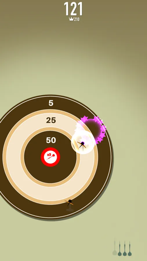A funky disco rhythm keeps you primed for play as the board offers fresh challenges. Watch out for the bomb! If your dart makes contact, the game ends.
