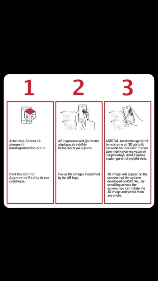 ASISTAL is proud to release the Augmented Reality APP that allows users to inspect in real time our products in 3 dimensions just by pointing the mobile device at the pages of our printed catalogs. This enables users to analyze our profiles from all angles without being in possession of the physical Profile. ASISTAL Augmented Reality saves a lot of time when analyzing and mounting ASISTAL systems allowing real time access to samples and prototypes from an Iphone or Ipad.